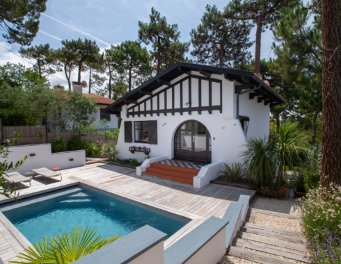 Ce projet permet : la construction d’une chambre et d’une salle d’eau au rez-de-chaussée, l’agrandissement de la terrasse à l’étage et la création d’une piscine.