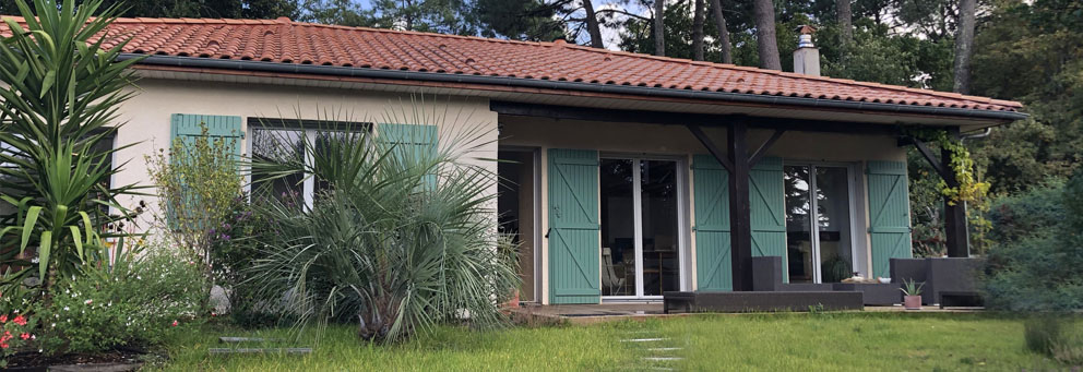 – Couleurs naturelles (beiges, verts) qui s’harmonisent parfaitement avec l’architecture typique de cette maison du Bassin d’Arcachon