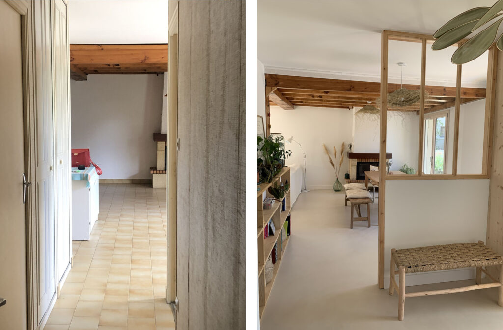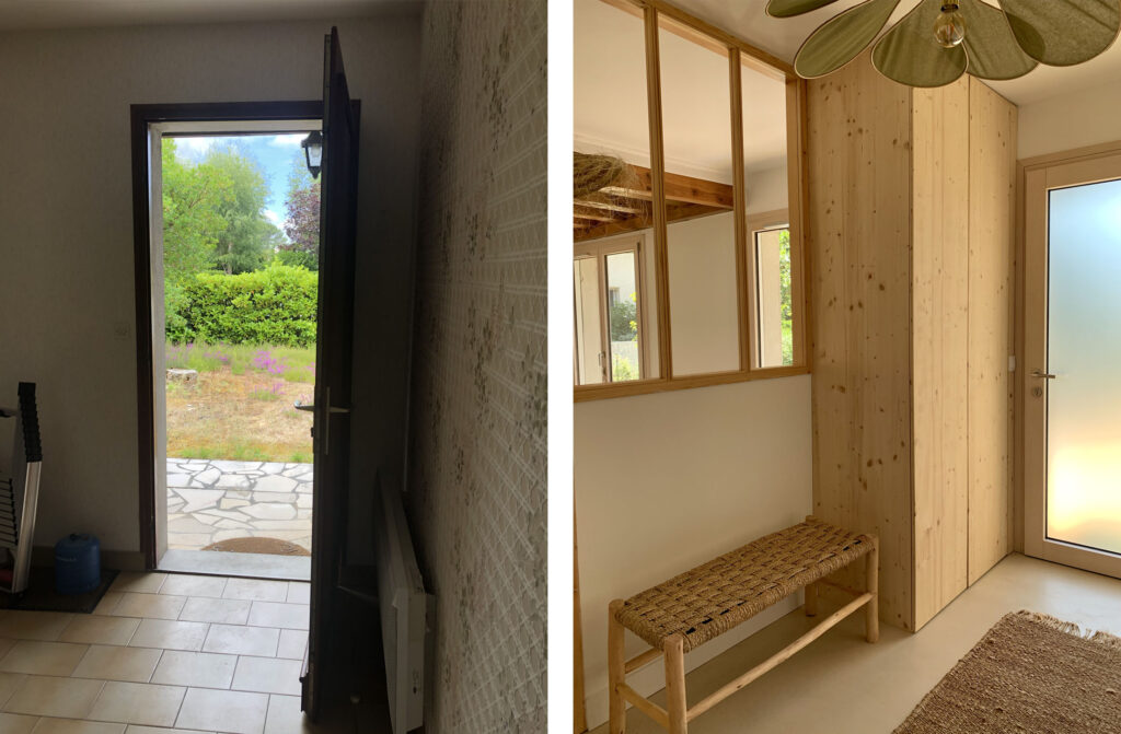 – Une entrée avec verrière sépare les espaces tout en laissant circuler la lumière.